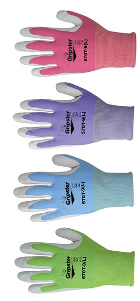 Small (7) 4-Pack Blue, Pink, Green and Purple Nitrile Coated Garden Gloves