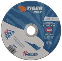 Tiger INOX 6 inch type 1 cutting wheels are specifically designed for high performance when cutting stainless steel. These wheels incorporate a Contaminant-free bond that delivers a worry-free solution for stainless steel applications. The flat type 1 profile allows for deep cuts commonly required when cutting metal. The .045heel thickness is ideal for cutting tubes, bar stock, and large cross-sections with a right angle grinder.