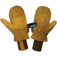 These premium grade russet cowhide split leather freezer mitten are double tanned, with a reinforced palm, knit wrist and 150 grams of 3M Thinsulate Insulation in the lining.They feature a long knit wrist cuff for extra warmth.