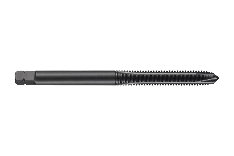 Spiral point tap with chamfer form B with a 3.5-5xP plug lead, for ISO-Metric thread M16 with 2.00 mm pitch and 6H class of fit, dimensions according to ISO 529 standard with 12.5mm shank and 10.0mm square drive, powder metallurgical HSS-E with steam tempered surface finish for 2.5xD through hole threading in general purpose applications