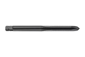 Spiral point tap with chamfer form B with a 3.5-5xP plug lead, for Unified National Fine thread UNF 5/16" with 24 TPI and 3B class of fit with H3 pitch diameter limits, dimensions according to ANSI standard with 0.3180" shank and 0.2380" square drive, powder metallurgical HSS-E with steam tempered surface finish for 2.5xD through hole threading in general purpose applications