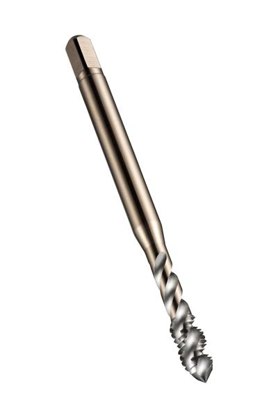 Spiral point tap with chamfer form B with a 3.5-5xP plug lead, for Unified National Fine thread UNF 7/8" with 14 TPI and 3B class of fit with H4 pitch diameter limits, dimensions according to ANSI standard with 0.6970" shank and 0.5230" square drive, powder metallurgical HSS-E with steam tempered surface finish for 2.5xD through hole threading in general purpose applications