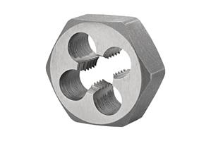 Hexagon die nut, for ISO-Metric thread M27 with 3.00 mm pitch and 6g class of fit, dimensions according to BS 1127:1950 standard with 2.2200" width across flat and 1.1/16" thickness, HSS with bright finish for repairing damaged thread in free machining and plain carbon steel, ferritic stainless steel and gray, malleable, ductile and compacted graphite cast-iron