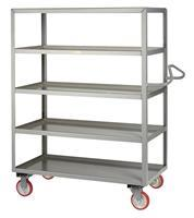 Five all-welded steel shelves provide plenty of storage space and make transporting large quantity loads a breeze.
