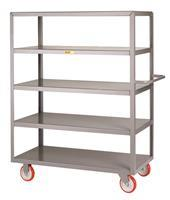 Five all-welded steel shelves provide plenty of storage space and make transporting large quantity loads a breeze.