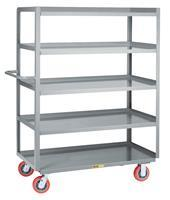 Heavy-duty Multi-Shelf Trucks provide plenty of space to transport your large loads. Also used as portable storage racks that can be moved for cleaning, or to different locations as your storage requirements change. Flush edges on shelf fronts allow user easy access for loading and unloading goods.