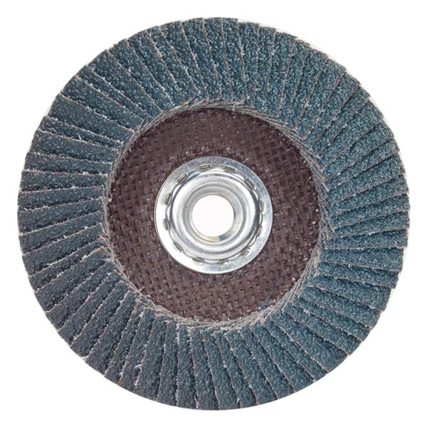 Flap discs are versatile grinding and finishing tools having four main components: abrasive flaps, flap density (how the flaps are stacked), backing plate (flat or conical shape), backing plate material (fiberglass/resin, plastic, aluminum). All flap discs have flaps that are overlapped and glued to the backing plate. The flaps wear during use exposing new abrasive grain. The different variations of the components above provide a variety of choices ranging from heavy stock removal to blending to finishing. Flap discs are designed for portable grinder applications and can be the preferred choice over depressed center wheels or fiber disc.