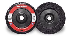 Scotch-Brite™ Clean and Strip XT Pro Disc features silicon carbide abrasive mineral incorporated into an open nylon web. It effectively removes rust, paint, mill scale, coatings and adhesives from surfaces without significantly altering the base material. The high-strength fibers are highly conformable, resist chunking and loading, and perform well on the edges of a workpiece.