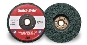Scotch-Brite™ Clean and Strip XT Pro Extra Cut TN Quick Change Disc features aluminum oxide abrasive mineral incorporated into an open nylon web. It is designed to remove heavy rust, thick paint and corrosion while also scratching the base material underneath, which can save you time. The highly conformable, high-strength fibers resist chunking and loading, and they perform well on edges.