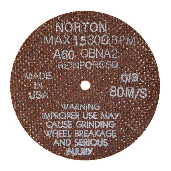 The Norton small diameter Type 01 cut-off line consists of Type 01 straight wheels from 1-1/2 In. - 6 In. diameters. These wheels come in ultra thin 0.035 In. for quick burn/burr free cutting to 1/8 In. for more durable applications. All are reinforced for the demanding nature of portable cut-off.