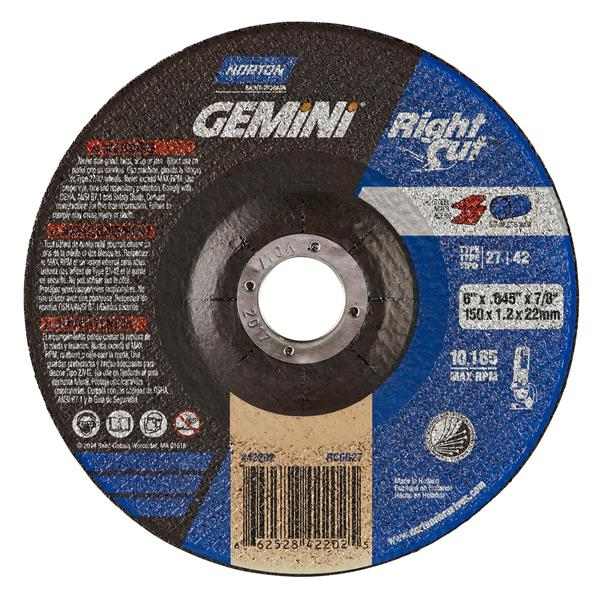 6 x .045 x 7/8 Inch Gemini Right Cut Right Angle Cut-Off Wheel 36 Grit Aluminum Oxide Reinforced Type 27/42