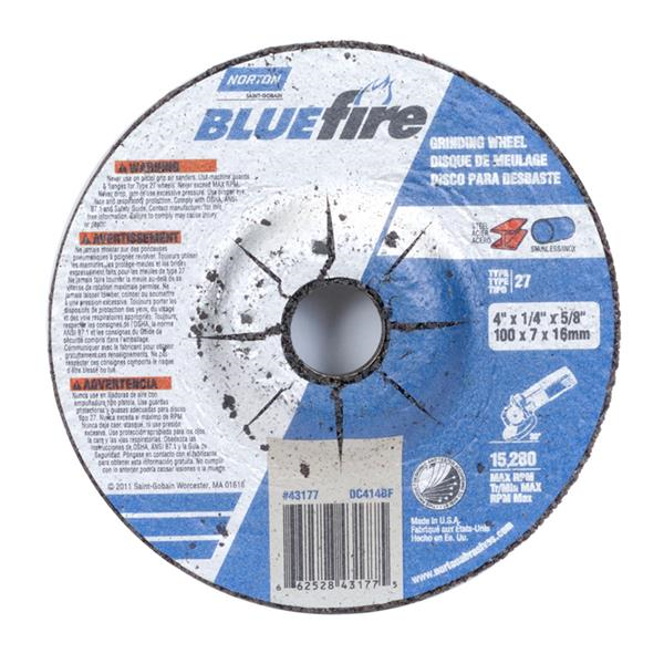 4 x 1/4 x 5/8 Inch BlueFire Foundry HD Grinding Wheel 24 Grit Zirconia Alumina/Aluminum Oxide Type 27