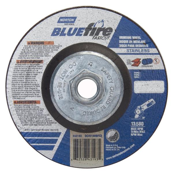 4-1/2 x 1/4 x 5/8 - 11 Inch BlueFire Foundry HD Grinding Wheel 24 Grit Zirconia Alumina/Aluminum Oxide Type 27
