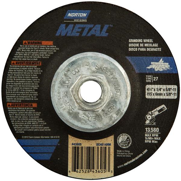 Depressed center wheels may also be referred to as raised hub wheels or by their shape designation Type 27, 28 or 29, with Type 27 being the most popular. The depressed center design allows the flange/lock nut to recess within the wheel so that it can be used for various grinding and cutting applications. Depressed center wheels are designed to handle the most severe right angle grinding applications from heavy stock removal to rough blending. More recently, depressed center wheels have been designed for cut-off applications when the tool is proper designed with flanges and guards. While large right angle grinders (7" & 9") have been around for many years, small or mini grinders that handle 4", 4-1/2" and 5" wheels have made this machine, and wheel category, the most popular in power tools.