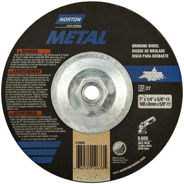 Depressed center wheels may also be referred to as raised hub wheels or by their shape designation Type 27, 28 or 29, with Type 27 being the most popular. The depressed center design allows the flange/lock nut to recess within the wheel so that it can be used for various grinding and cutting applications. Depressed center wheels are designed to handle the most severe right angle grinding applications from heavy stock removal to rough blending. More recently, depressed center wheels have been designed for cut-off applications when the tool is proper designed with flanges and guards. While large right angle grinders (7" & 9") have been around for many years, small or mini grinders that handle 4", 4-1/2" and 5" wheels have made this machine, and wheel category, the most popular in power tools.