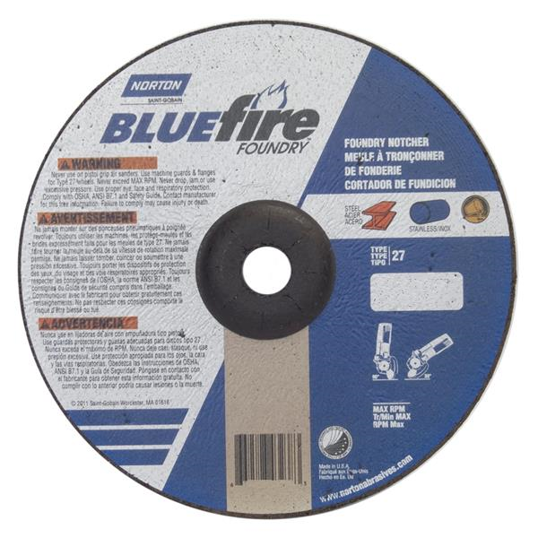 7 x 1/8 x 7/8 Inch BlueFire Foundry Grinding and Cutting Wheel 24 Grit Zirconia Alumina/Silicon Carbide Reinforced Type 27