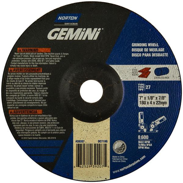 7 x 1/8 x 7/8 Inch Gemini Right Cut Grinding and Cutting Wheel 24 Grit Aluminum Oxide Type 27