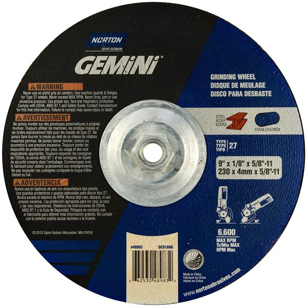 9 x 1/8 x 5/8 - 11 Inch Gemini Right Cut Grinding and Cutting Wheel 24 Grit Aluminum Oxide Type 27