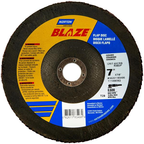 7 X 1/4 X 7/8 Inch SG Blaze R980P Flap Disc Type 29 Conical 40 Grit C/A