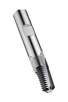 Thread milling cutter, for Unified National Coarse thread ? UNC 3/4" with 10 TPI, dimensions according to DORMER standard with 5 flutes, 14mm cutting diameter and 14mm Weldon shank according to DIN 6535 HB, solid carbide with Alcrona Pro coating, through coolant holes and 10? helix angle for milling a maximum of 32mm long right or left hand internal thread in steel and cast steel, stainless steel, cast-iron, non-ferrous metals, titanium or titanium alloys, chilled cast-iron