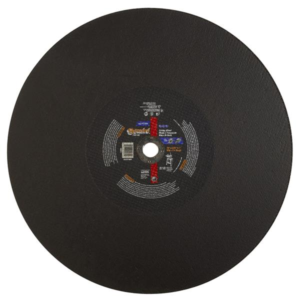 The Norton stationary saw reinforced cut-off wheel line consists of type 01 straight 10 In. - 24 In. wheels, designed to fit on fixed-base stationary saws that are free-standing or mounted on a workbench. The primary applications are cutting all metal (flat stock, bars, studs, pipes, tubes, angle iron, cable) and non-metallic parts.