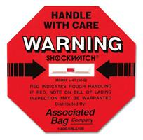 Self-stick label houses a liquid-filled glass tube that instantly changes from clear to colored when a package is mishandled. Label cannot be reset and will not activate under normal road movement.