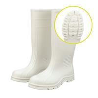 The White Tuff PVC boot provides all day comfort & protection for industrial workers who have ability to clean boots after exposures.Allows visibility of debris, and supports heat modulation. Anti-slip outside and heel for added traction. Reinforced at critical stress points for longer wear. Resistant to degradation from agricultural chemicals, animal fats and waste. Steel toe complies with ASTM F2413-18. Ideal for general industrial use, food processing, occupational, & marine use.