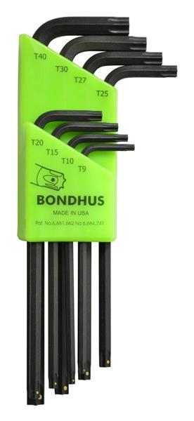 ProHold Star Tip Star Key L-wrench Set of 8 Pieces with ProGuard™ Finish. Packaged in Bondhex Color Coded Case. Includes: Long Arm Sizes T9, T10, T15, T20, T25, T27, T30 & T40