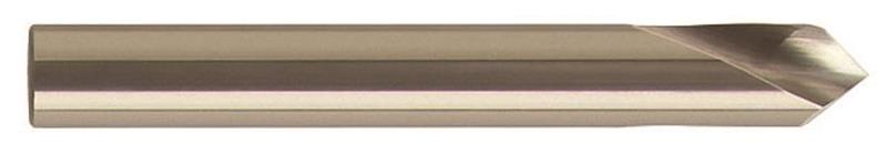 NC spot drills are high precision drills designed specifically for creating an accurate hole location for a secondary drilling operation. NC spot drills due not have body clearance and are not designed to drill greater than the depth of the point angle. The 90° and 120° spot drills are primarily used to create an initial spot for 118° and 135° secondary drills respectively. The 142° point NC Spot drill, series 546, is designed to help center carbide drills with an angle of 140°.