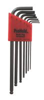 ProHold Ball End Tip Hex Key L-wrench Set of 7 Pieces with ProGuard™ Finish. Long Arm. Packaged in Bondhex Color Coded Case. Set Includes: 1.5mm, 2mm, 2.5mm, 3mm, 4mm, 5mm & 6mm.