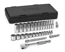 30 Piece 3/8 Inch Drive 12 Point SAE Standard and Deep Socket Set