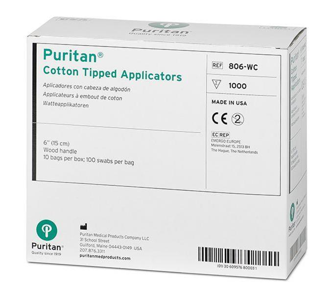 6" Puritan Standard Cotton Tipped Applicator with Wood Handle