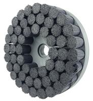 Nylon Disc Brushes - Weiler's Nylon disc brushes are manufactured using a tufted filament configuration and longer trim length for increased aggression, greater conformability and longer product life in comparison to monofilament disc brushes which feature a distribution of short individual bristles. Burr-Rx Disc Brushes feature Weiler's advanced black ceramic grain filament which delivers up to a 400% greater edge cutting action in comparison to traditional silicon carbide and aluminum oxide filaments for the fastest, most aggressive deburring action for minimum cycle times and maximum media life. All Burr-Rx Disc Brushes are manufactured using a process which results in a very consistent, flat brush face in comparison to traditional construction which utilizes a molded backing. The high dimensional precision of these tools means that the brushes are suitable for the most critical applications and perform more consistently from first part to last. In addition, the machined polymer backings are designed to mount directly onto a standard shell mill holder for convenient use in CNC machining centers. Burr-Rx Shell Mill Holder Disc Brushes - Crimped Black Ceramic Filament.