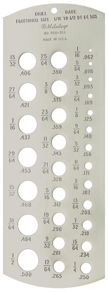 1/16-1/2 Inch Fractional Drill Gage