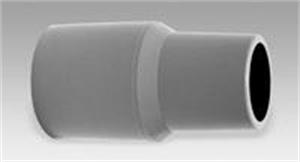 This hose cuff allows a connection to be made between a vacuum hose with a threaded 1-1/2" diameter hose and a tool with a non-threaded 1-1/4" diameter hose.