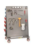 1200 lbs. capacity. Use in your Lean Manufacturing facility to transport and efficiently organize tools and parts. Visually locate items in seconds. Use tool shadowing on the pegboards to know immediately if a tool, accessory, or part is missing.