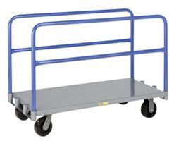 3600 lbs. capacity. Ideal for large or small quantities of plywood, drywall, or other sheet material. Also great for rolled goods, office partition panels, folding tables or use as a standard platform truck.