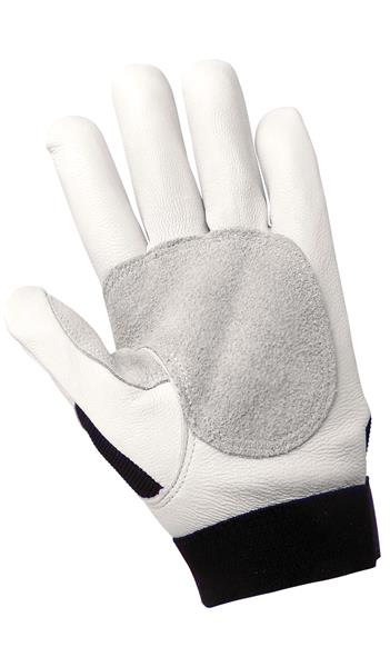These premium goatskin palm gloves feature are reinforced with anti-shock/vibration padding in the palm and finger area. The Anti-Shock/Vibration dampening material helps to lessen vibrations, hand fatigue and other related injuries. They also have a reinforced thumb crotch area, black spandex back and a hook and loop closure for a secure fit. Each pair is individually hook tagged.