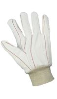These 18 oz.corded, 100% cotton gloves are bleach white and feature a natural color knit wrist cuff and a straight thumb.