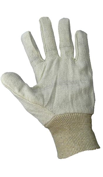 These 8 oz. cotton canvas gloves feature a knit wrist and wing thumb on a natural colored shell.