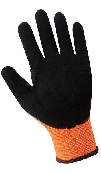 Constructed with high-visibility orange nylon, these gloves feature a Mach Finish nitrile-coated palm with padding sewn underneath. Anti-impact TPR adds additional protection to the fingertips and back of the hand. The palm is coated with double-dipped Mach Finish nitrile to enhance grip and prevent liquid saturation.