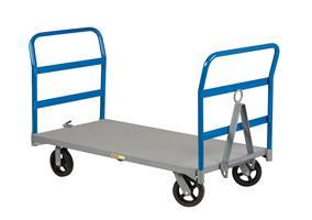 - Ring draw bar stays in upright position for manual operation as a platform truck