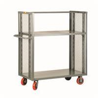 3600 lbs. capacity. Expanded metal ends extend 48" high above the deck, improve visibility, and allow 2-way access to material.