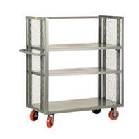 3600 lbs. capacity. Expanded metal ends extend 48" high above the deck, improve visibility, and allow 2-way access to material.
