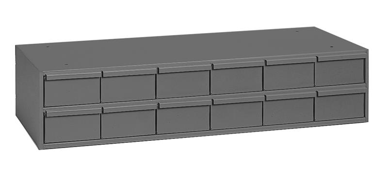 12 drawers, 11-5/8" deep, steel construction, for small part storage, gray