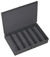 Large, steel, compartment box, 6 compartments, vertical, gray