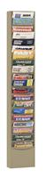 20 Large pockets special purpose rack. Prime cold rolled steel has a powder coated finish that is rust and acid resistant. Oversized pockets to accommodate larger sized literature. Pockets are 12-1/4 in. wide and 8-3/8 in. high. Holds literature up to 3/4 in. thick. Keyhole slots in the back make wall mounting easy. Base to make units free standing and Dura-Hang brackets to allow hanging on office partitions are available as accessories. Ships fully assembled ready for use. Tan color.