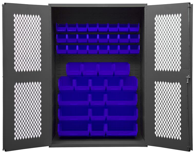 48 in. x 24 in. x 72 in. Gray Ventilated Cabinet with 42 Blue Hook-On Bins