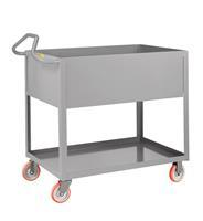Deep shelf trucks combine the convenience of a 12" deep top tray for accumulating and transporting smaller parts with the rugged durability of an all-welded unit. Shelves are formed from 12 gauge steel, with 12" deep top shelf. 2 swivel and 2 rigid non-marking polyurethane casters offer easy maneuverability and quiet operation.