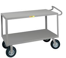 All-welded steel utility cart with cushion load wheels provide a smooth ride over rough or uneven surfaces. Available with or without nonslip vinyl shelf surface.